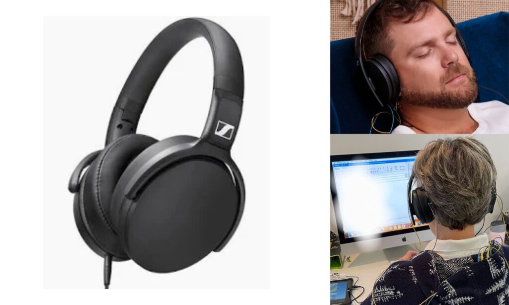 At Neurofeedback Rentals we supply Sennheiser HD 400 Series Headphones with all of our kits because they provide clear, balanced audio with passive noise isolation. They connect easily to the Tablet through the audio jack port.